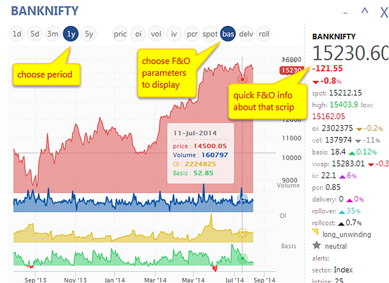 (TIP: you can also display a quick OI/volume/basis/IV trend for that contract by clicking on the respective buttons at the top of the quick chart)